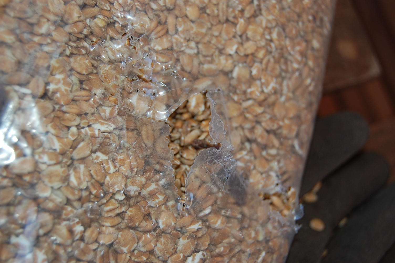 Dann habe ich für mein geschenkt bekommenes, alte Vogelhäuschen Vogelfutter gekauft. Aber weil es noch nicht so kalt und erst recht nicht verschneit war, habe ich noch nicht gefüttert. Ich habe das Futter draußen unter dem Vordach liegen lassen. Und als ich ein paar Tage später wieder vorbei kam, hatte sich ein Tierchen Zugang verschafft. Was ist das wohl, ein Nagetier oder ein Vogel?